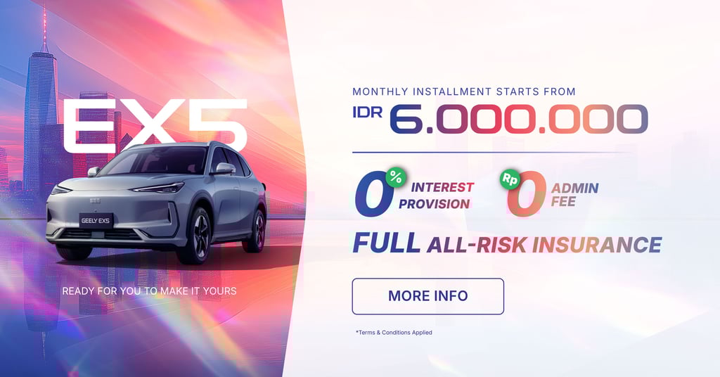 Dengan tampilan yang elegan, performa mesin bertenaga, serta teknologi pintar yang mendukung mobilitas tanpa batas, Geely EX5 adalah pilihan sempurna bagi mereka yang menginginkan kendaraan berkualitas tinggi dengan nilai terbaik di kelasnya.